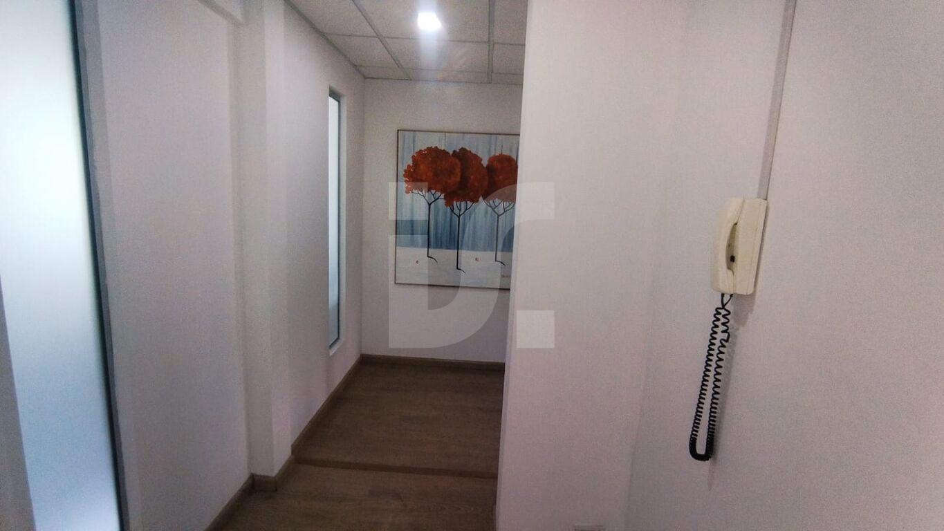 Salòn de 12 m² con aire acondicionado, piso flotante y ventana con persiana.Sala de espera con aire acondicionado y recepción.